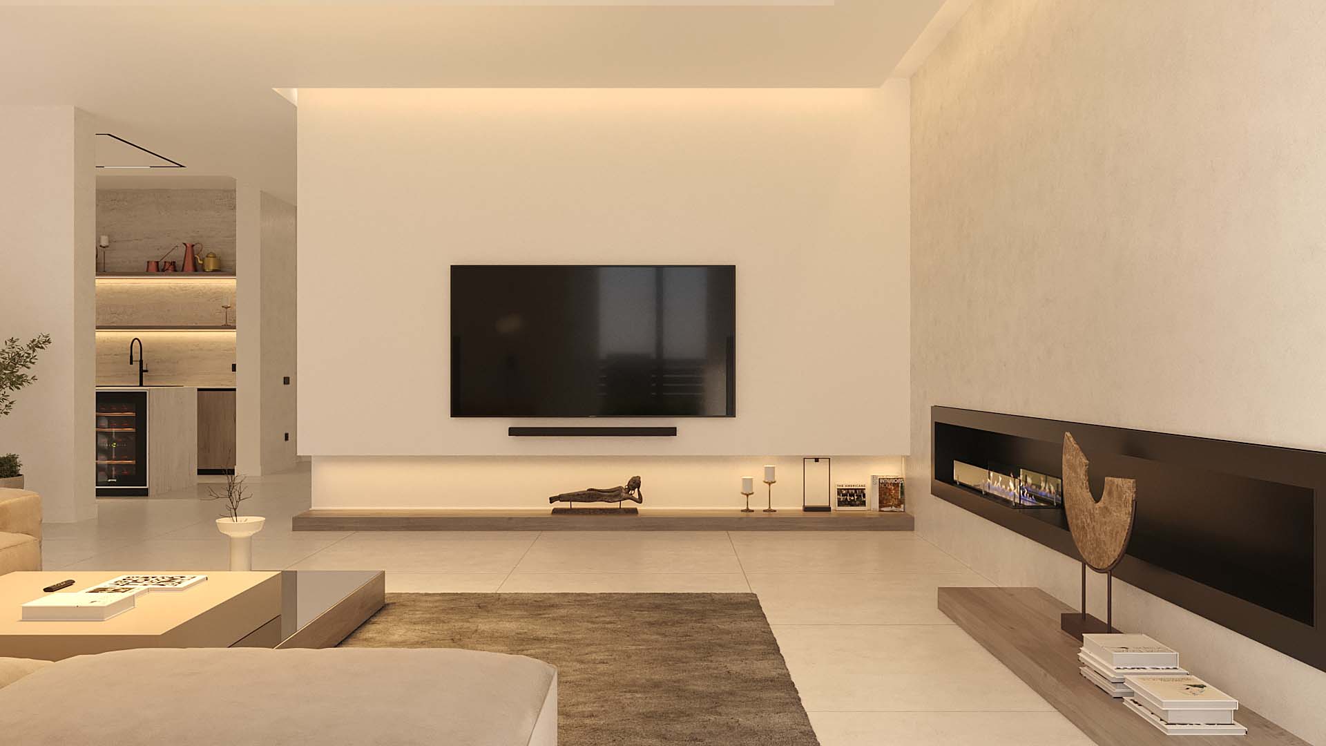 Дизайн-проект интерьера - просторно, светло, лаконично, уютно и натуральные материалы: дерево, камень травертин, белый и бежевые тона - формула современно-идеального варианта интерьера дома. Выполненные работы: планировка и зонирование, концепция, наполнение, подбор живописи, 3Д визуализация всех зон, полный комплект чертежей.